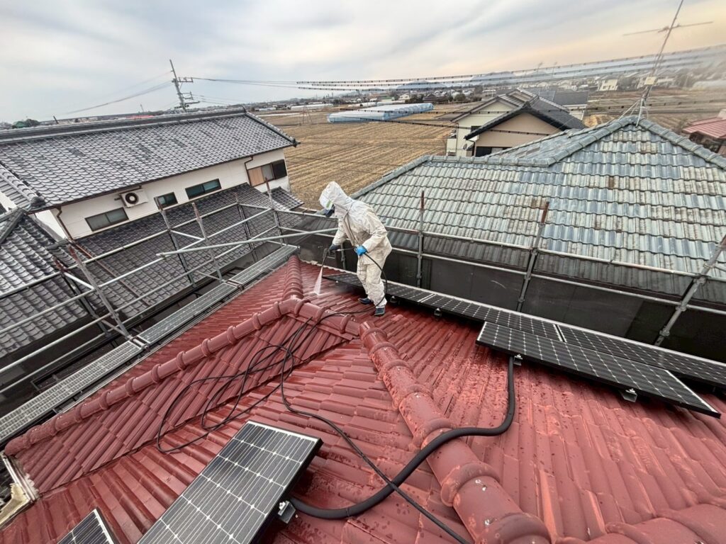 屋根は特に入念に洗浄します。