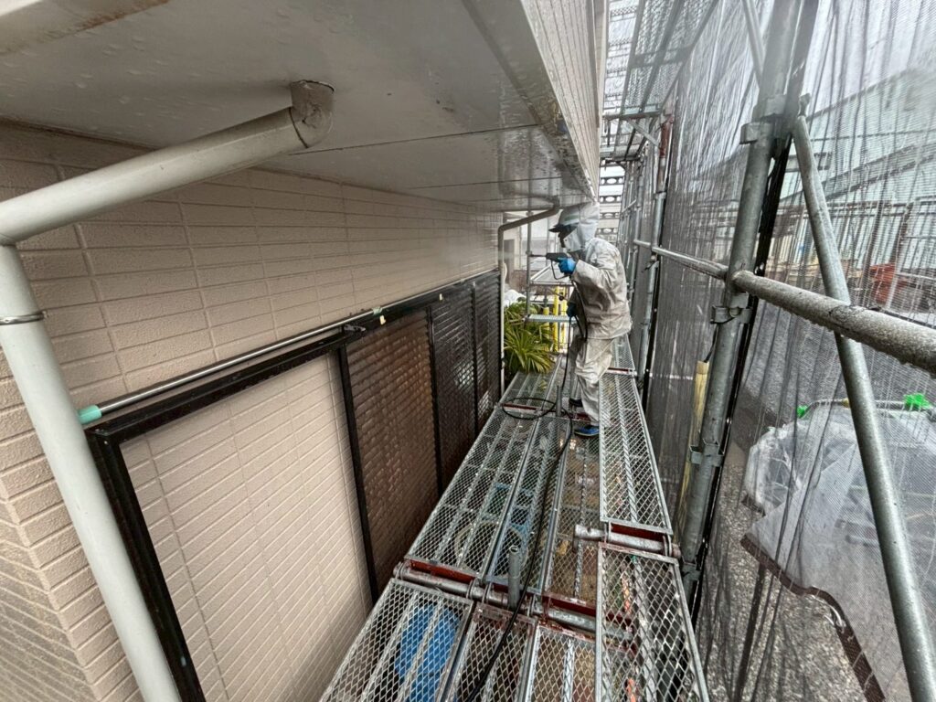 外壁だけではなく、軒裏、雨樋、雨戸の裏までしっかり洗います。
